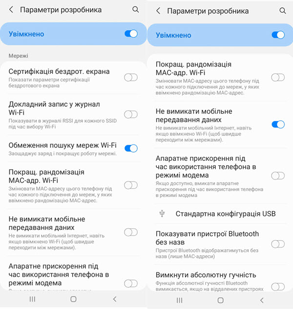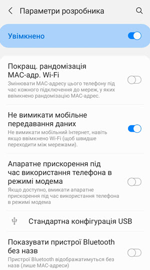 - Не вимикати екран: екран залишається не заблокованим (підсвічується), якщо девайс підключений до живлення.