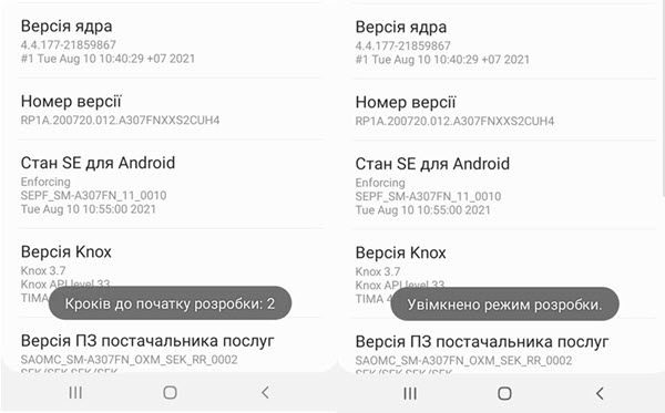 - Швидко тапнути на пункт «Номер версії» (або «Версія ядра») 7 разів.