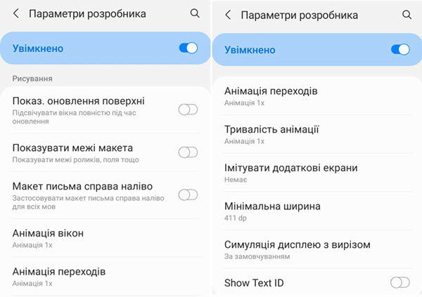 - Мінімальна ширина: використовується для керування розмірами елементів інтерфейсу. Ця функція доступна для ОС версії 7 і вище, але є не у всіх моделях смартфонів.