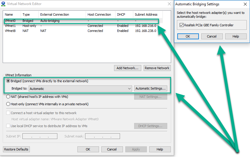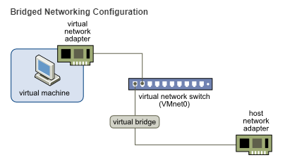 Цей тип підключення має можливість використовувати будь-які мережеві сервіси та пристрої, що надаються в цій локальній системі (сканери, принтери, маршрутизатори і т. ін.) У свою чергу, надаються свої ресурси в мережу. У цьому сценарії призначення мережевих адрес відбувається за правилами, прийнятим в цій локальній мережі. Підключення здійснюється за протоколом DHCP, або ж у системного адміністратора можна отримати статичну IP-адресу. Коли встановлюється робоча станція в хост-систему Windows або Linux, налаштовується мостова мережу (VMnet0).