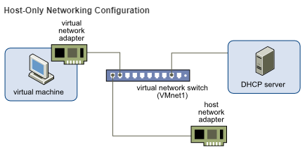 Ця модель взаємодії створює підключення, яке повністю утримується в базовому комп'ютері. Забезпечується з'єднання між віртуальним пристроєм і хост-системою за допомогою абстрактного мережевого адаптера, який розпізнається на фізичному комп'ютері. Коли встановлюється робоча станція на хост-систему Windows або Linux, налаштовується мережа тільки для хоста (VMnet1).