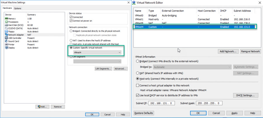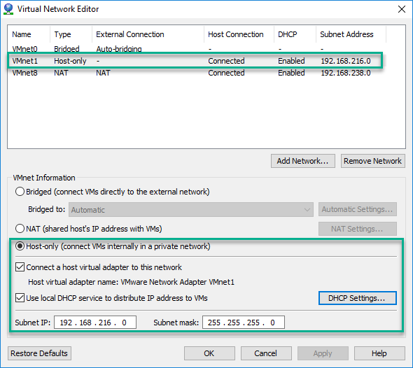 Зразок налаштувань мережі Host-only в VMware Workstation
